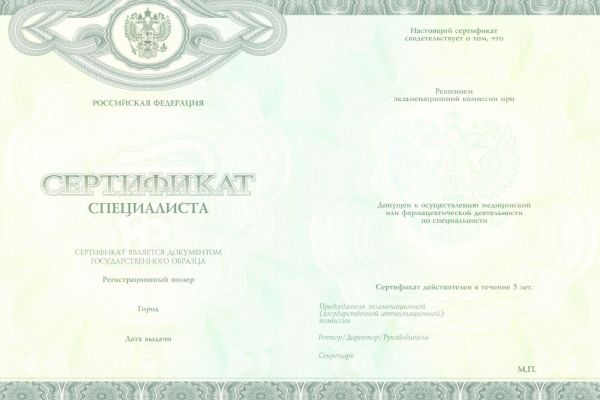 Медицинский сертификат специалиста 2013 — 2025 годы |