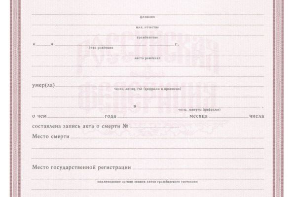 Свидетельство о смерти – это документ, который часто требуется для решения важных вопросов, будь то оформление наследства, завершение юридических дел или защита прав близких. Мы понимаем, как тяжело в такие моменты заниматься бумажной волокитой, и как ценно время, поэтому на нашем сайте вы найдете простое решение, чтобы получить официальный документ без лишних хлопот. Каждая бумага изготавливается на бланках, соответствующих государственной регистрации в органах ЗАГС, с необходимыми печатями и подписями, что гарантирует её качество и подлинность. Это не просто лист бумаги, а возможность для человека или доверенных лиц быстро урегулировать дела, связанные с утратой.