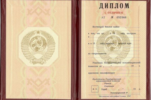 Красный диплом о высшем образовании СССР с 1980 по 1996