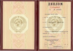 Диплом Вуза СССР с 1980 по 1996 годы с отличием |
