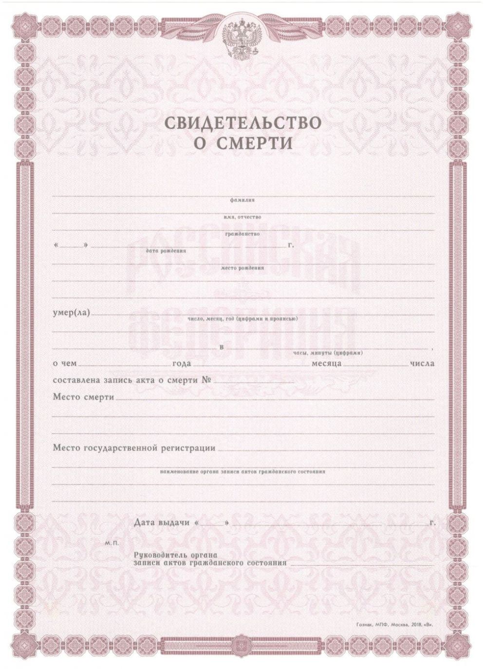 Купить Свидетельство о смерти (все года)